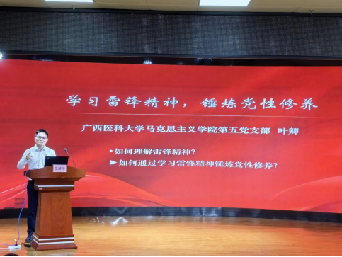 随后,第五党支部叶卿同志以“学习雷锋精神,锤炼党性修养”为主题作宣讲,系统阐述了雷锋精神的理论品质与实践路径。廖仁郎同志走进幼儿园课堂,形象生动地向小朋友们展示了广西三月三民俗文化。活动赢得了幼儿园老师和小朋友们的阵阵掌声。