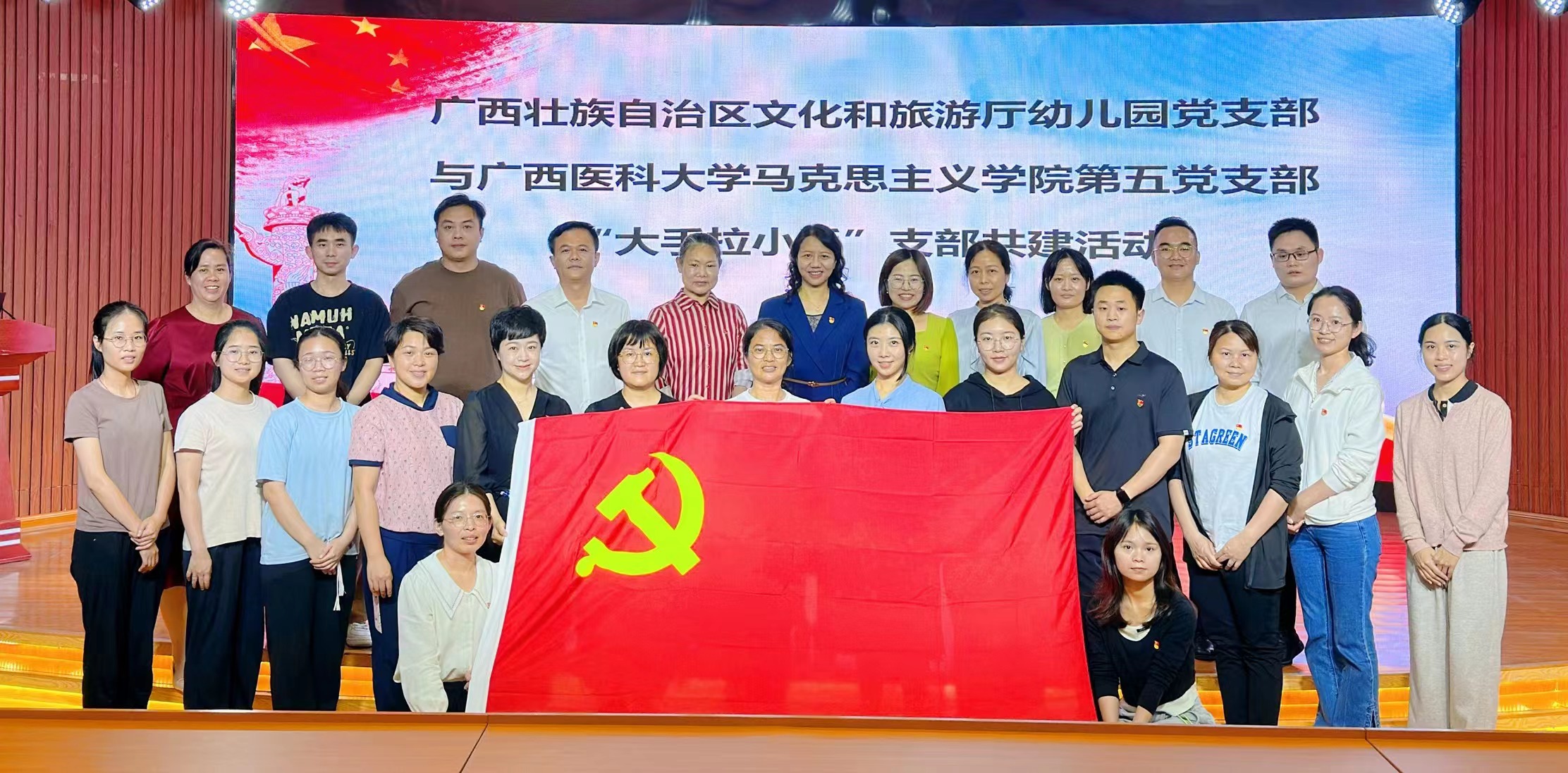 为进一步发挥样板支部的模范带头作用,深入践行雷锋精神,3月28日下午,广西医科大学英国上市公司365第五党支部联合广西壮族自治区文化和旅游厅幼儿园党支部、广西医科大学英国上市公司365第一党支部,在自治区文化和旅游厅幼儿园开展“大手拉小手”支部共建暨学雷锋主题活动。