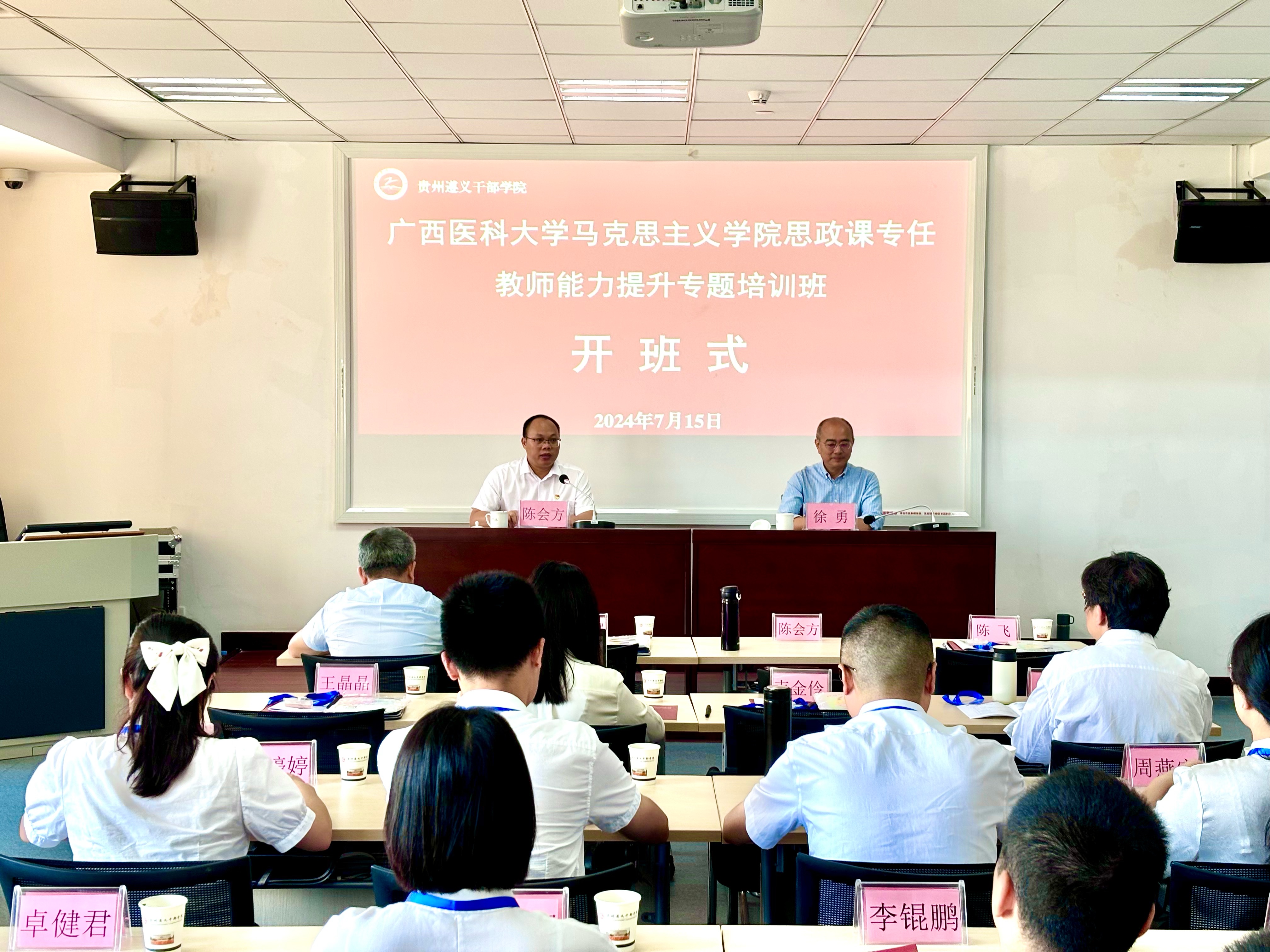 开班仪式上,学院党委书记陈会方作动员讲话。他希望全体学员要珍惜这次难得的学习机会,端正学习态度,真正做到学有所思、学有所悟、学有所得,切实将遵义会议精神、长征精神内化于心,践行于行,努力把学习成果融入思政课教学和日常工作之中,推动学院高质量发展。贵州遵义干部学院遵义会议研究中心主任徐勇致欢迎词,并简要介绍了遵义干部学院基本情况。