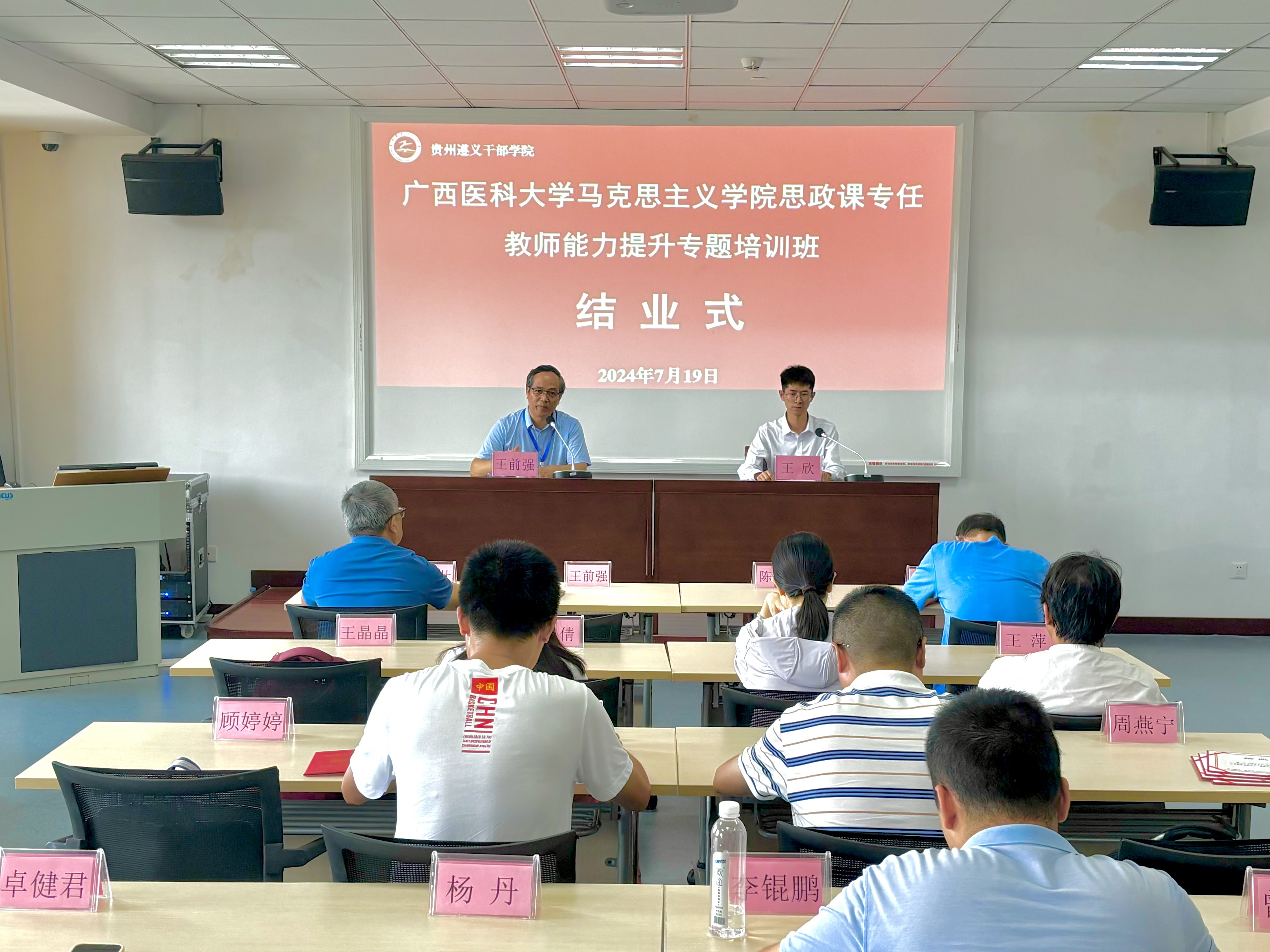 所有课程结束后,培训班举行了简短的结业仪式。学院院长王前强为培训班学员代表颁发了结业证书,并作总结讲话。他表示此次培训课程安排内容丰富、针对性强,授课专家水平高,拓宽了老师们的教育教学视野,同时希望参训学员继续加强专业学习,进一步提升自身政治素质和教育教学能力。