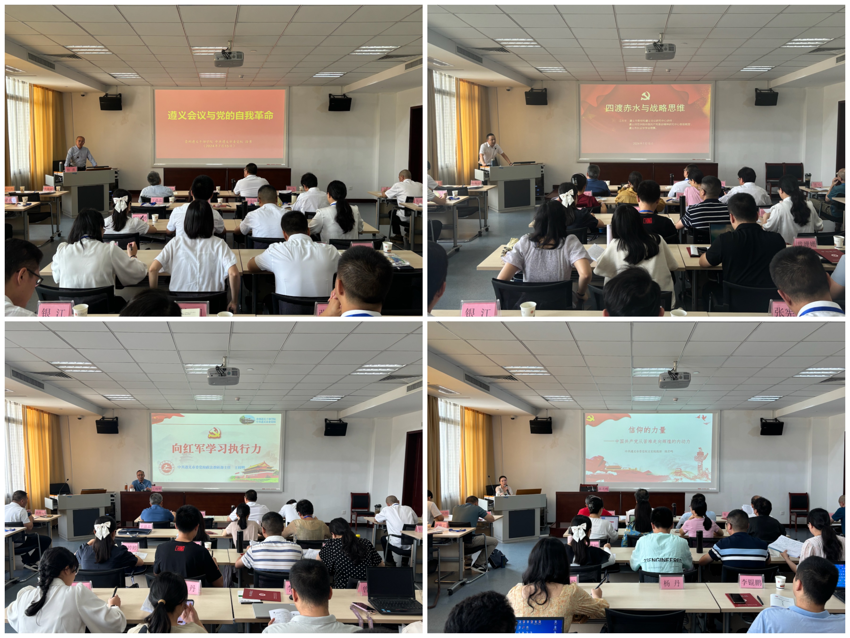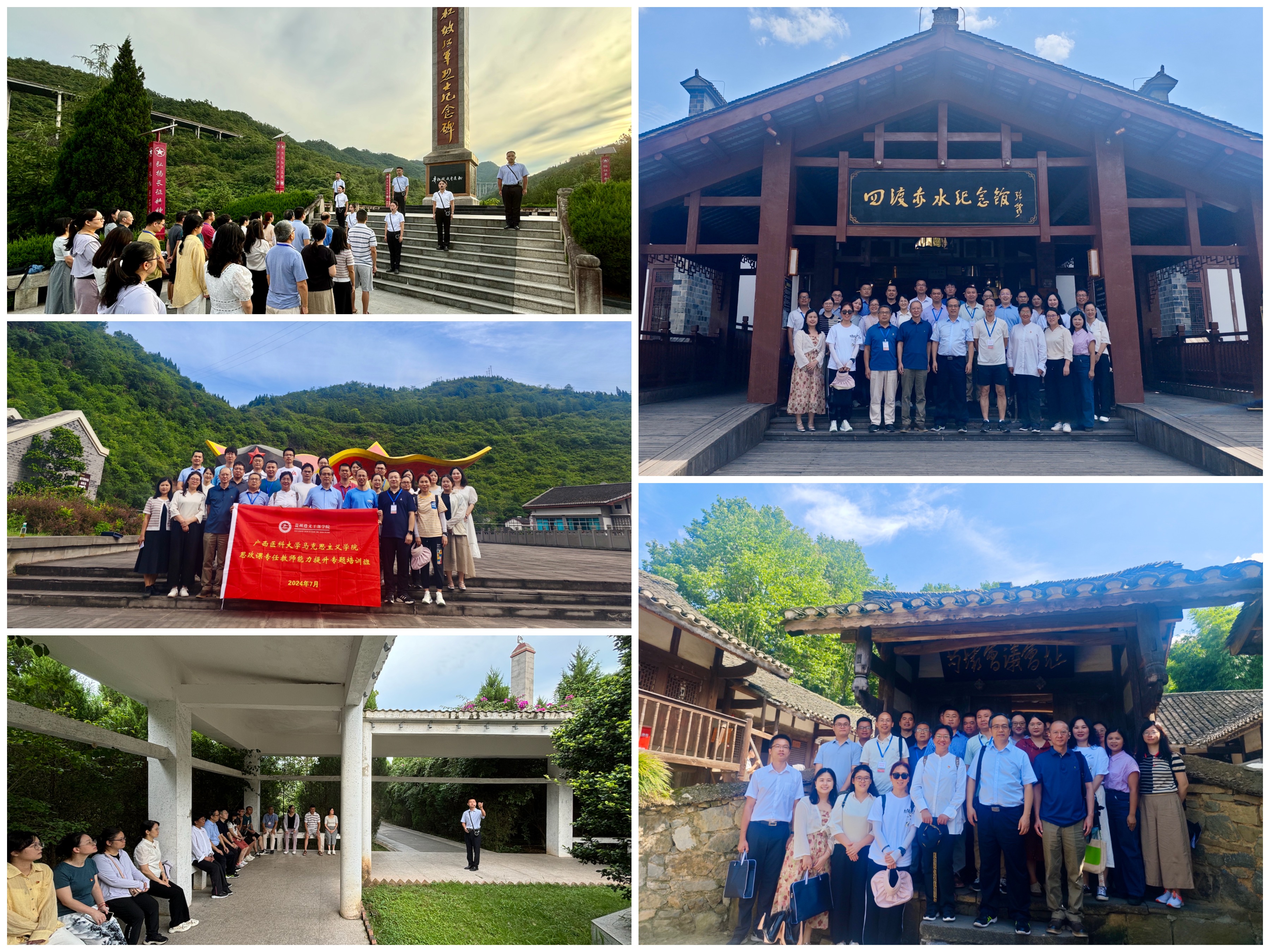 本次培训班采取专题教学、现场教学和体验教学相结合的方式,内容丰富、特色鲜明。在专题教学中,共设计了《遵义会议与党的自我革命》《四渡赤水与战略思维》《向红军学习执行力》《信仰的力量》《以中国式现代化全面推进中华民族伟大复兴——党的二十大精神解读》等5个专题内容。在现场教学环节,学员们先后到遵义会议会址和陈列馆、苟坝会议会址、枫香镇花茂村、四渡赤水纪念馆、青杠坡战斗遗址、女红军纪念馆、四渡赤水之三渡陈列馆等地参观学习,接受党性教育和精神洗礼。体验教学环节,学员们来到凤凰山红军烈士陵园敬献花篮缅怀革命烈士,重温入党誓词,并在四渡赤水之三渡渡口体验跨越铁索桥。