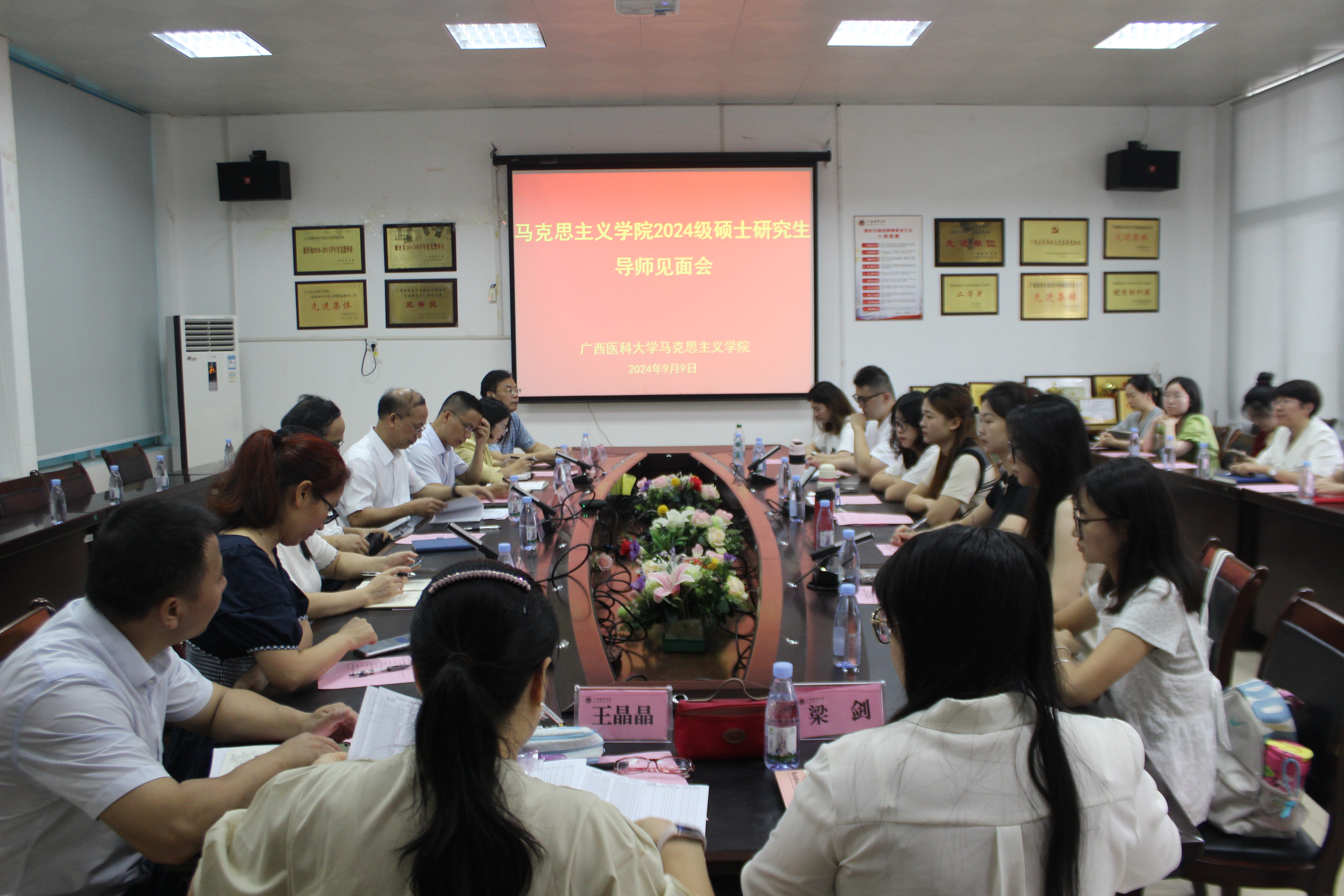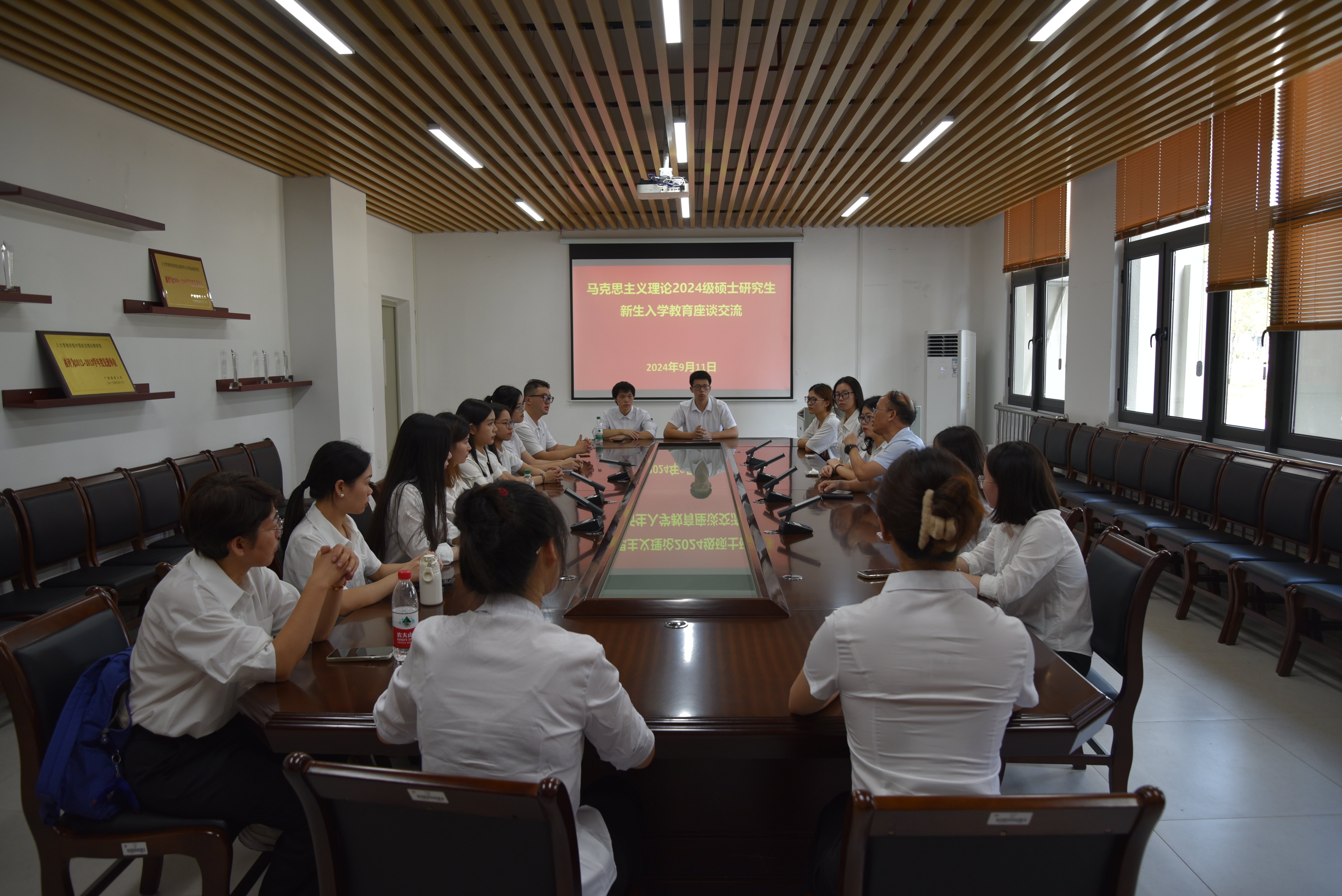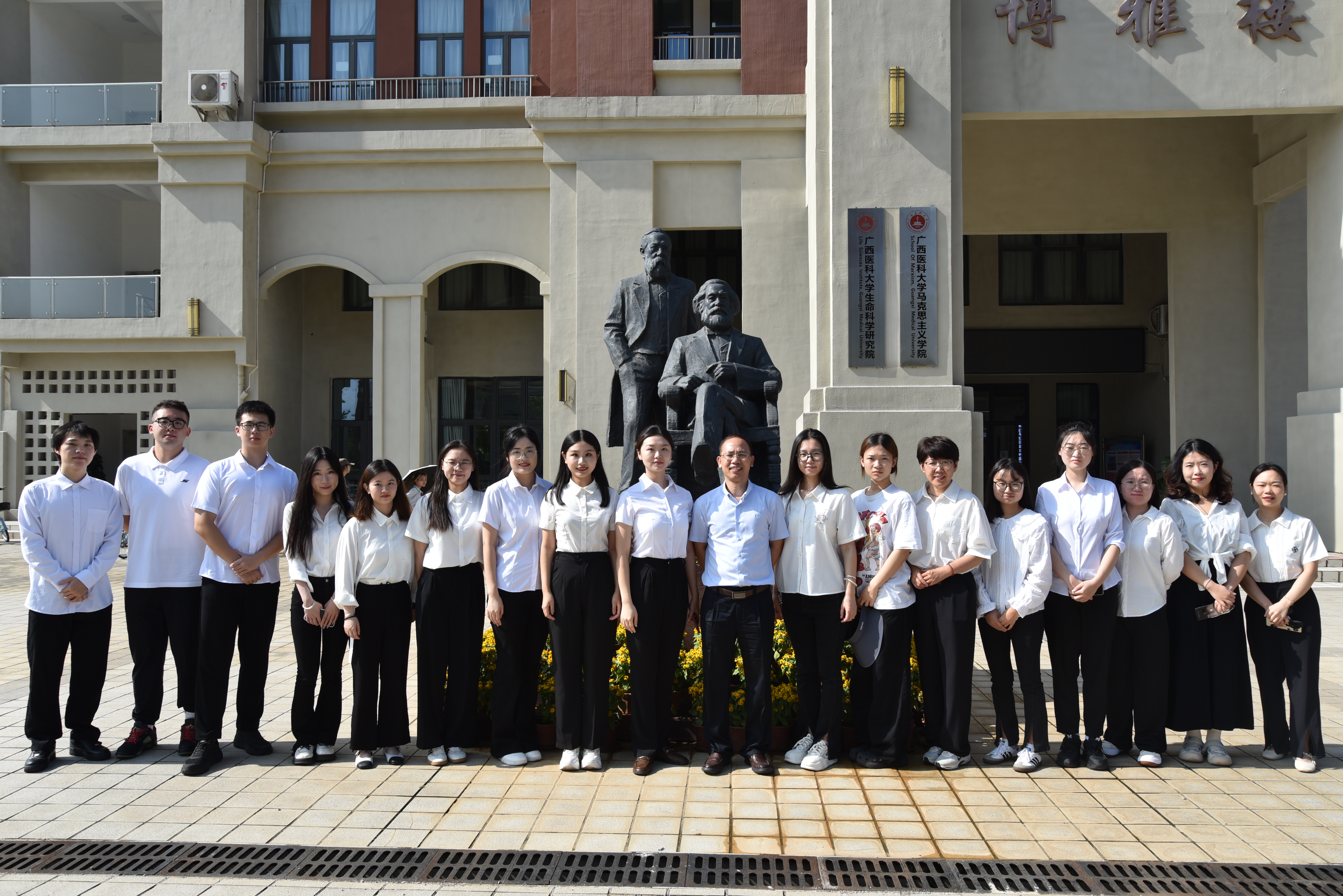 9月11日上午,学院组织2024级研究生到武鸣校区实地参观马克思恩格斯雕塑、马克思主义理论宣教长廊、党建与思想政治教育虚拟仿真中心、广西马克思主义理论研究与建设工程(广西医科大学研究基地)及广西人民政协理论研究工作站,帮助2024级研究生更快、更全面了解学院建设情况。参观结束后,师生一行还开展了座谈交流。