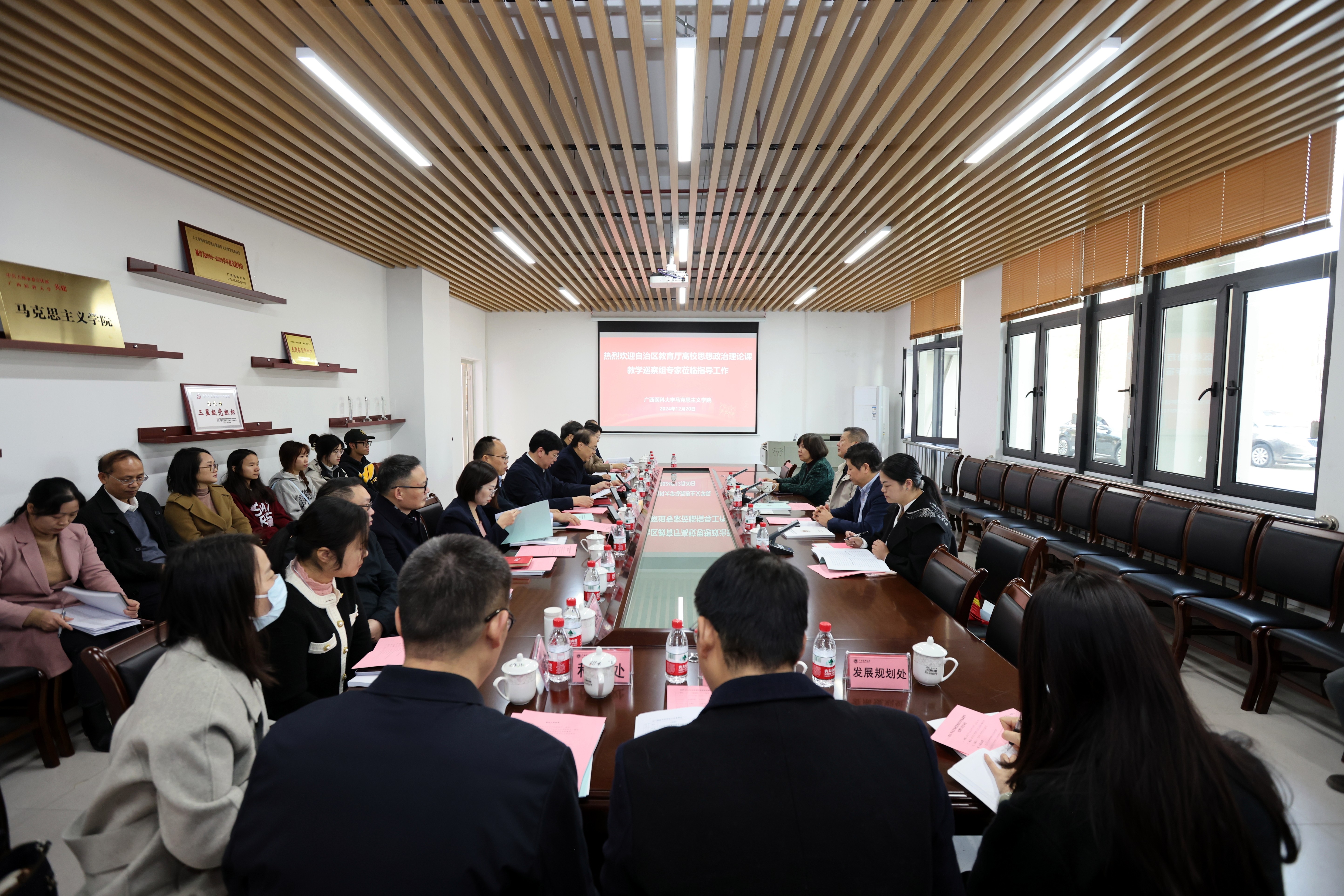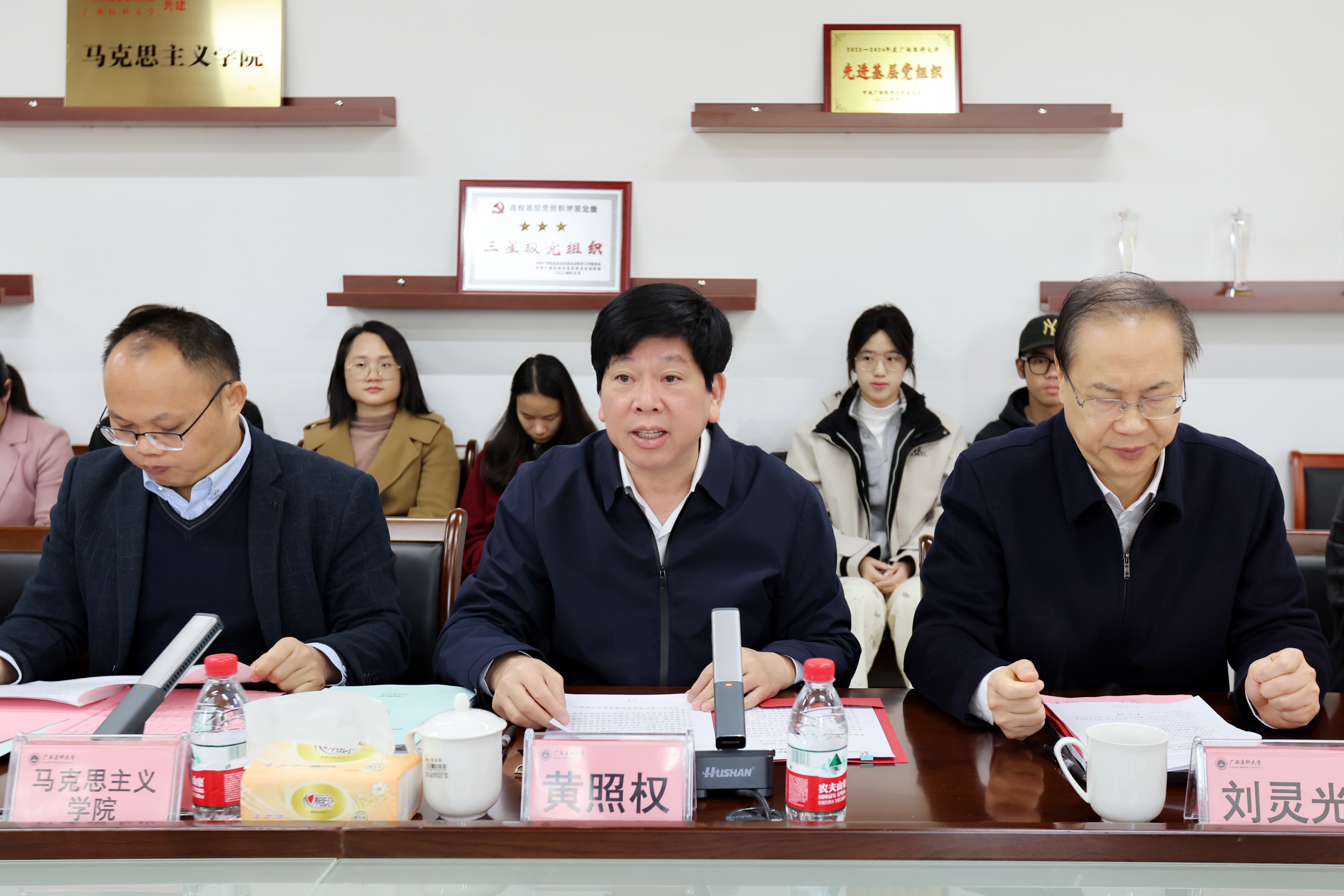 12月20日上午,由桂林航天工业学院副校长胡泽民、南宁师范大学英国上市公司365院长曾令辉、广西师范大学英国上市公司365王进芬教授、桂林航天工业学院英国上市公司365张君教授一行组成的全区高校思想政治理论课教学巡察组到我校开展教学巡察暨听课指导工作。学校党委书记黄照权、副书记刘灵光以及相关职能部门负责人、英国上市公司365领导班子和思政课教师代表参加汇报会和反馈会。会议由刘灵光主持。