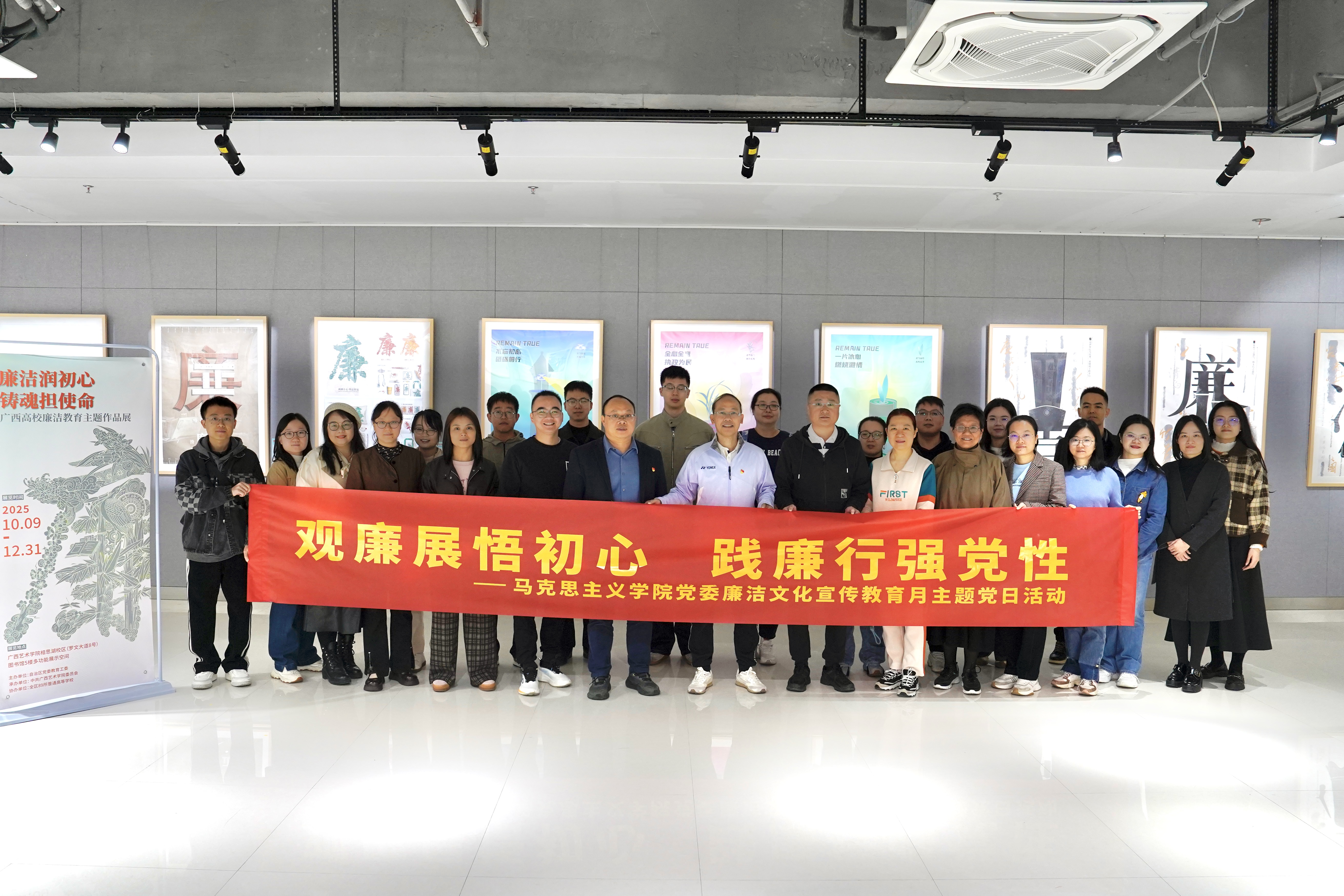 11月29日,英国上市公司365党委以“观廉展悟初心,践廉行强党性”为主题开展廉洁文化宣传教育月主题党日活动,学院领导班子成员及师生代表前往广西艺术学院相思湖校区图书馆5楼多功能展示空间,参观“廉洁润初心 铸魂担使命”——广西高校廉洁教育主题作品展。